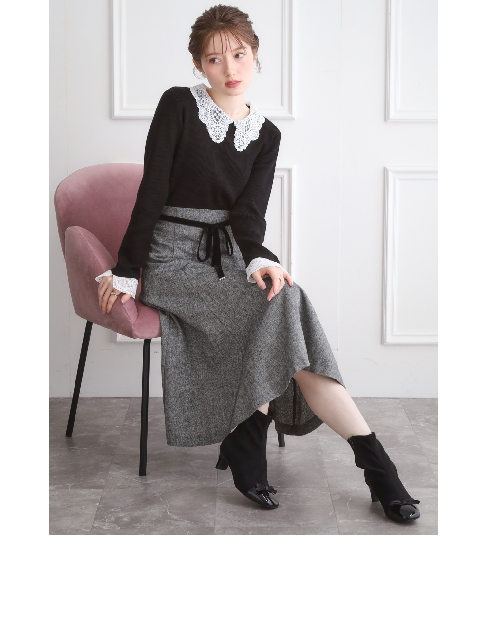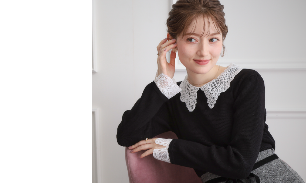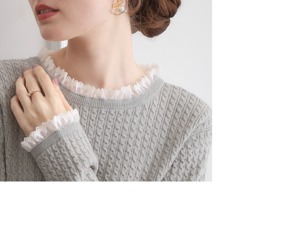 【着映え・フェミニン・通勤】レース衿カフス付きリブニット