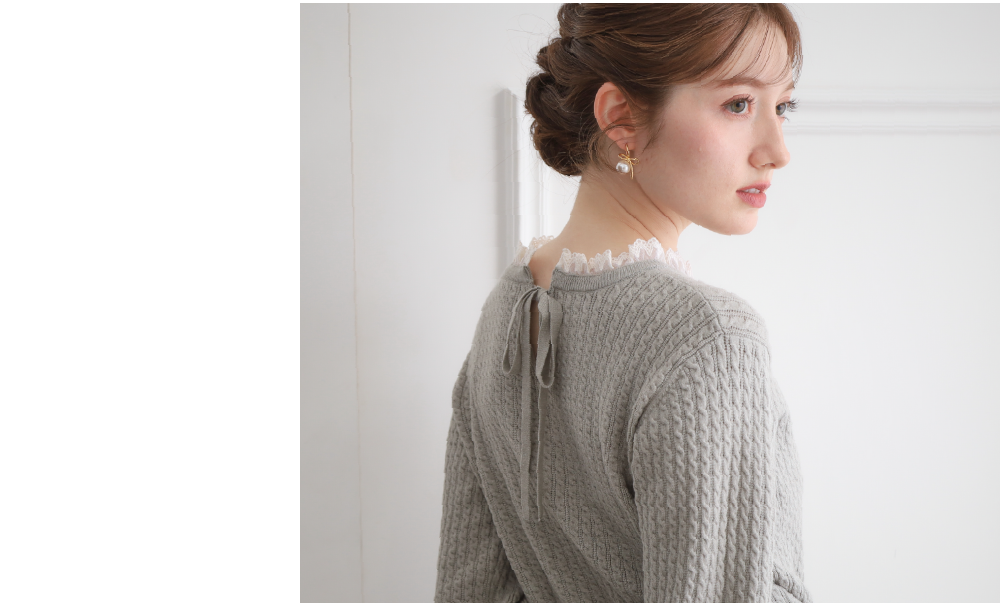 【大人上品・着映え】ケーブルレース バックリボンニット