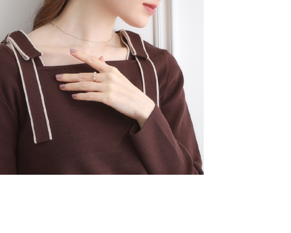 【着映え・フェミニン・高見え】配色リボン総針ニットトップス