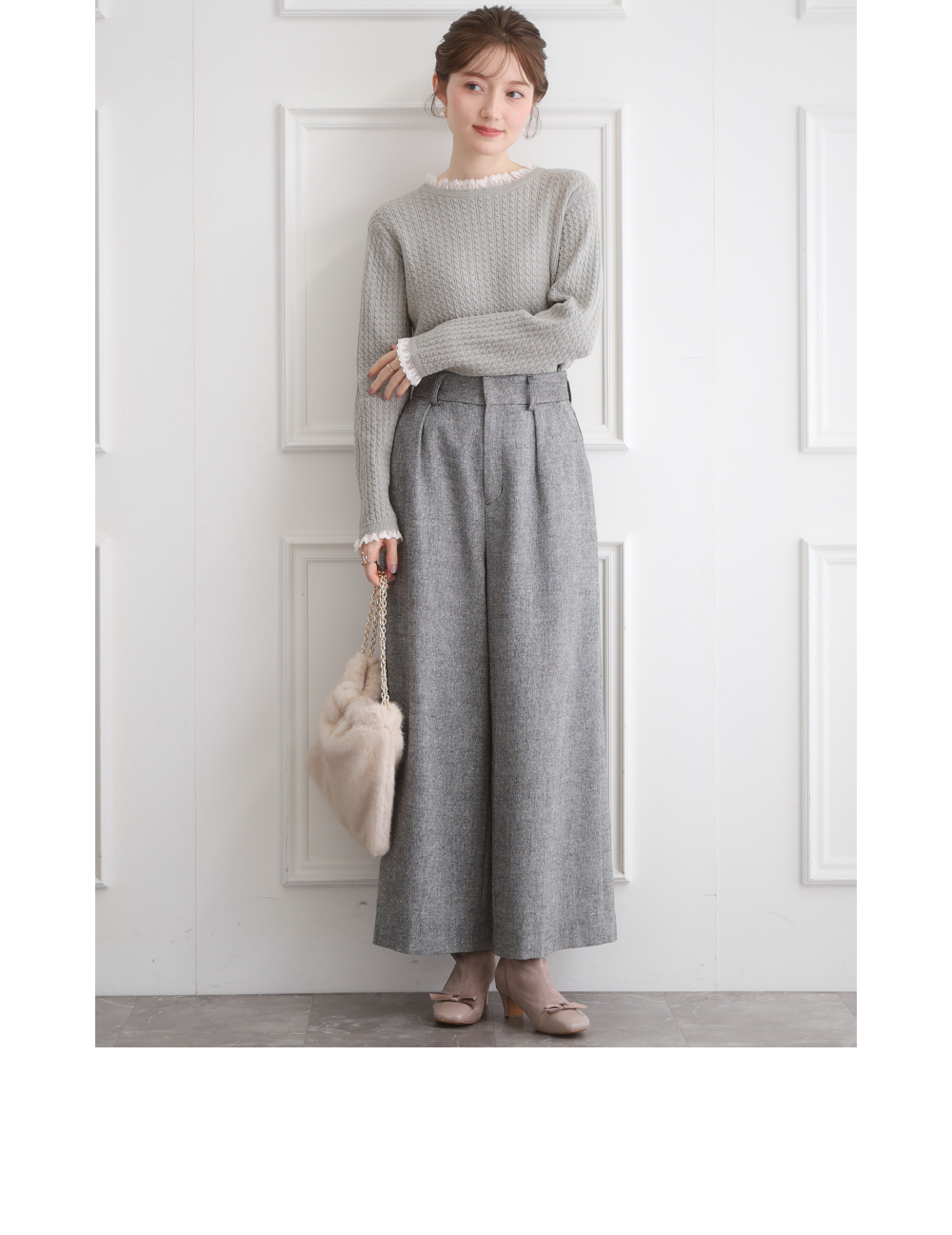 【上品華やか・通勤】ラメツイード ワイドパンツ