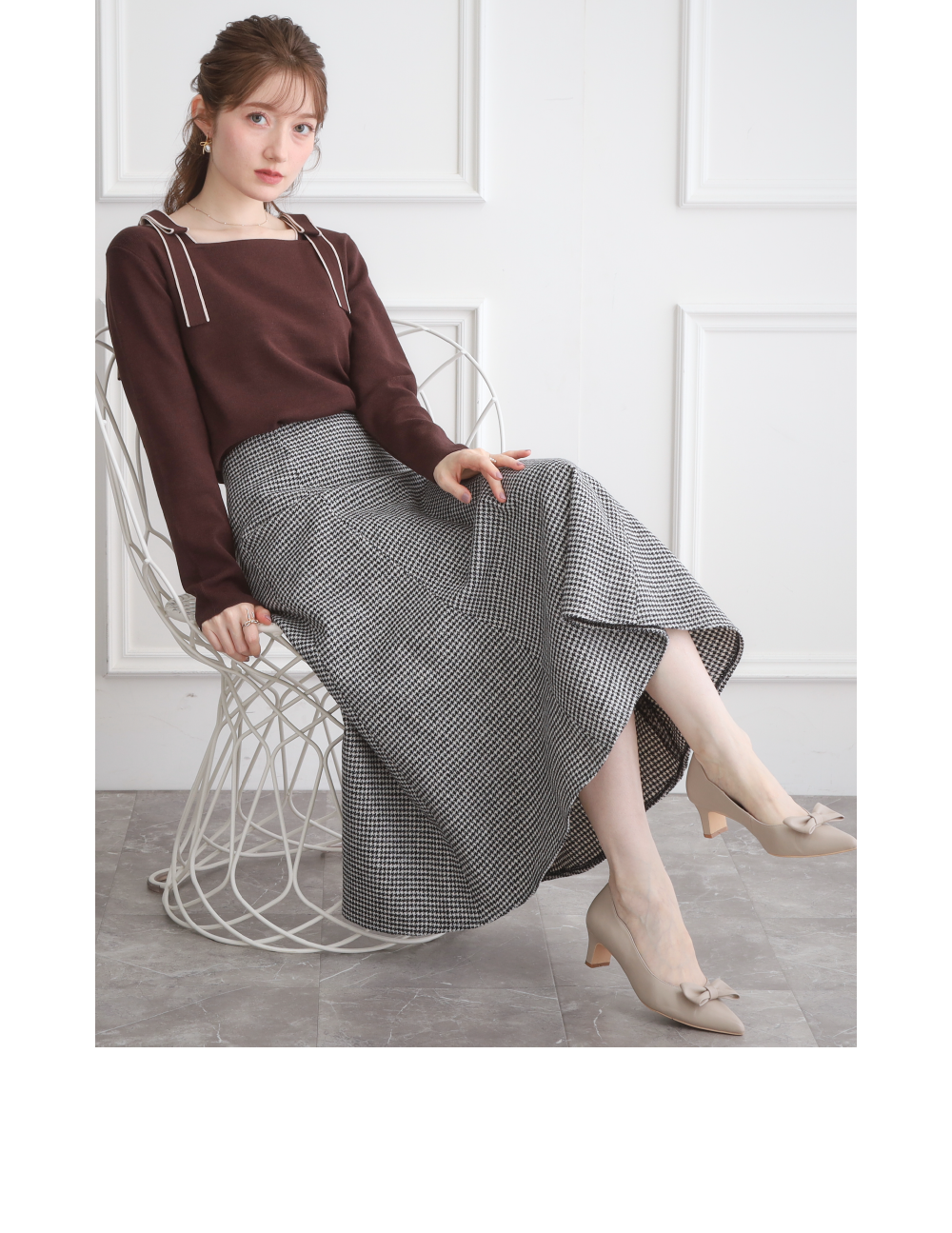【クラシカル・パッと目を惹く】ラメ千鳥 マーメイド フレアスカート