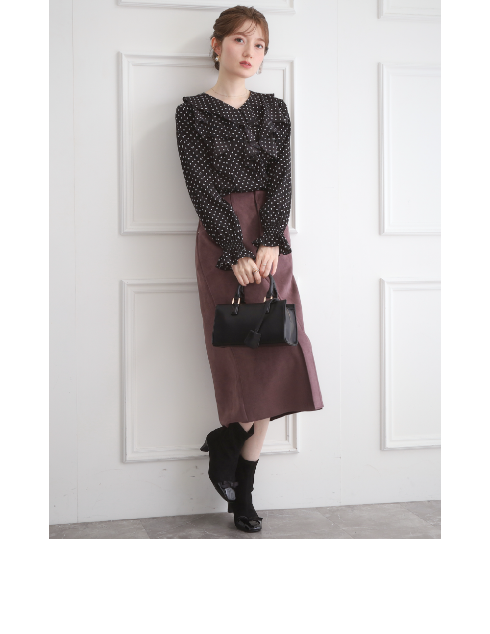 【洗える・ストレッチ・通勤】スエード調ダンボールIラインスカート