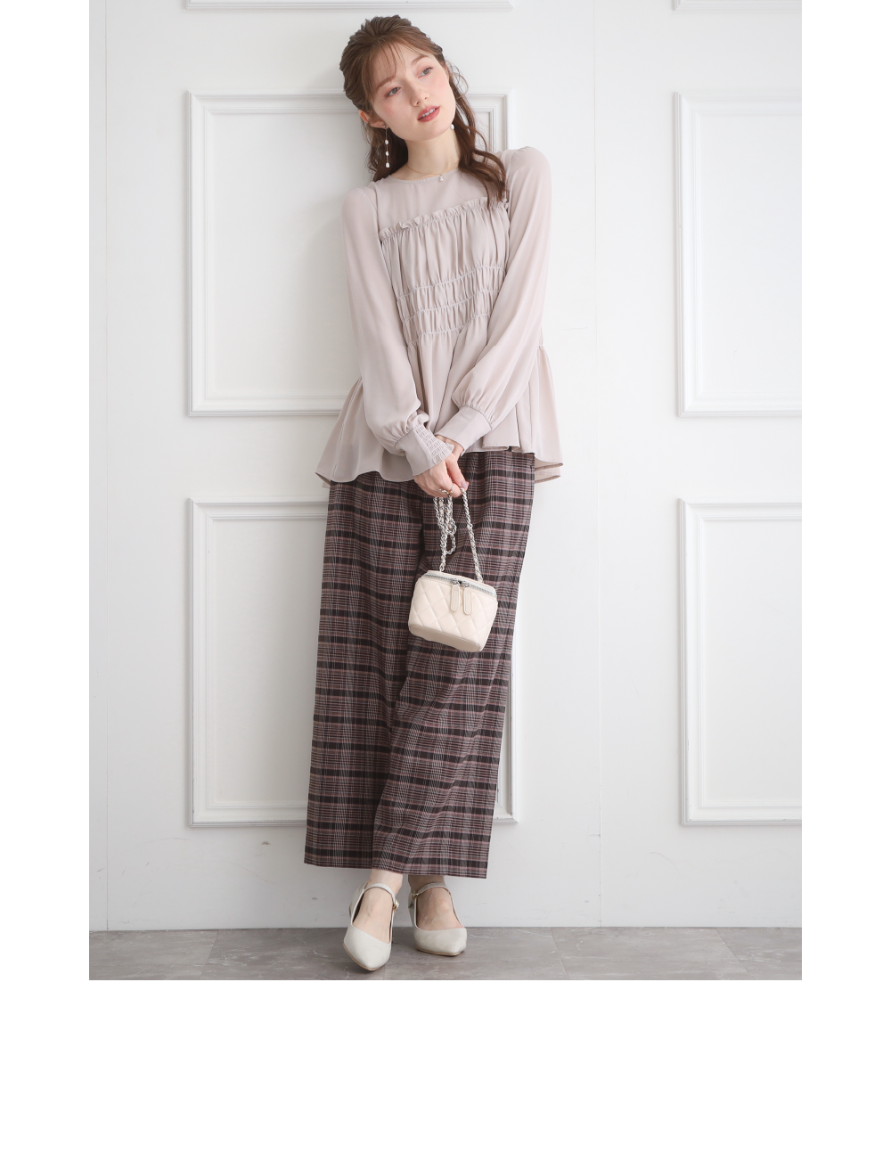 【大人可愛い】起毛先染めチェック柄 スカラウエスト ワイドパンツ