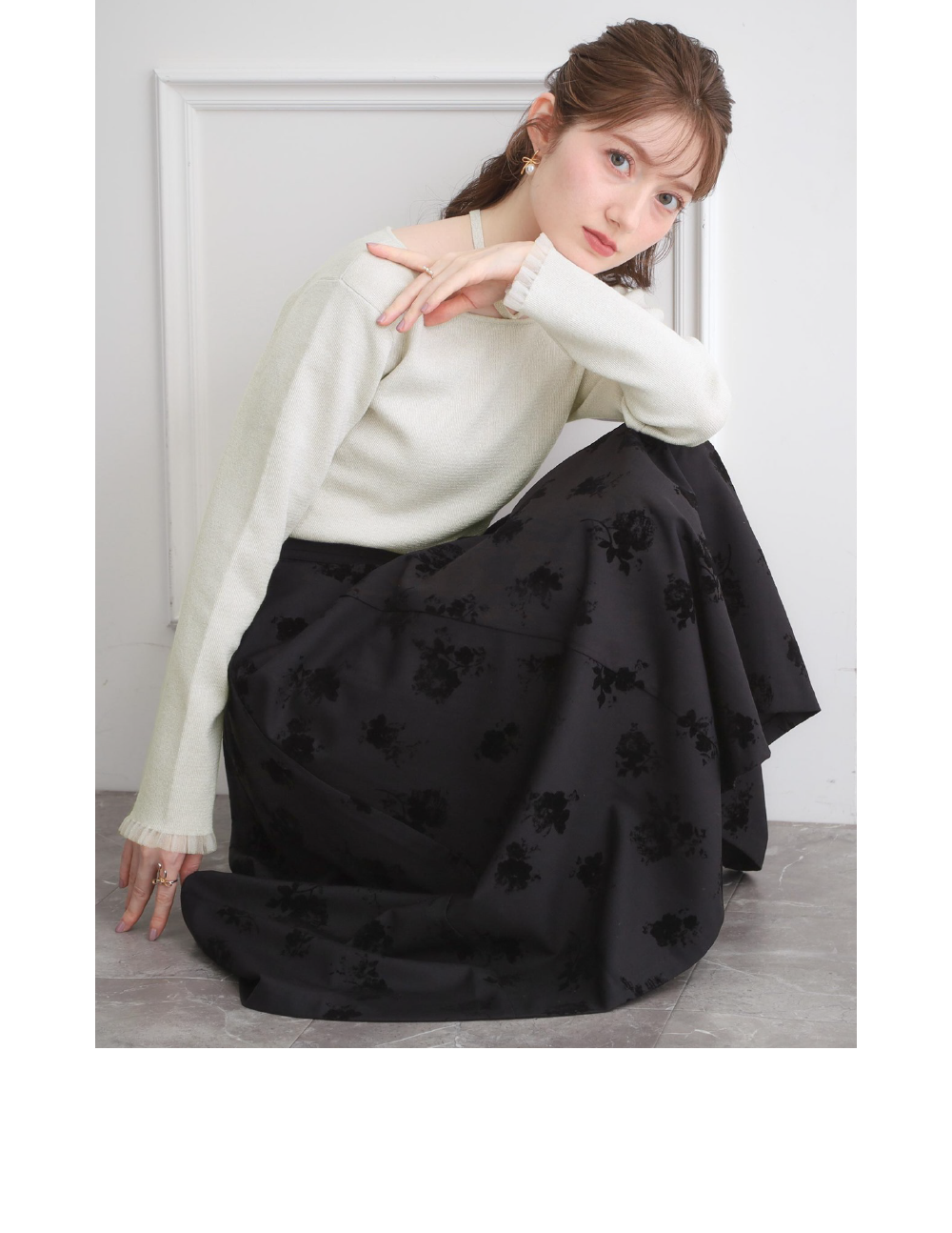 【美シルエット・通勤】フロッキーフラワープリントスカート
