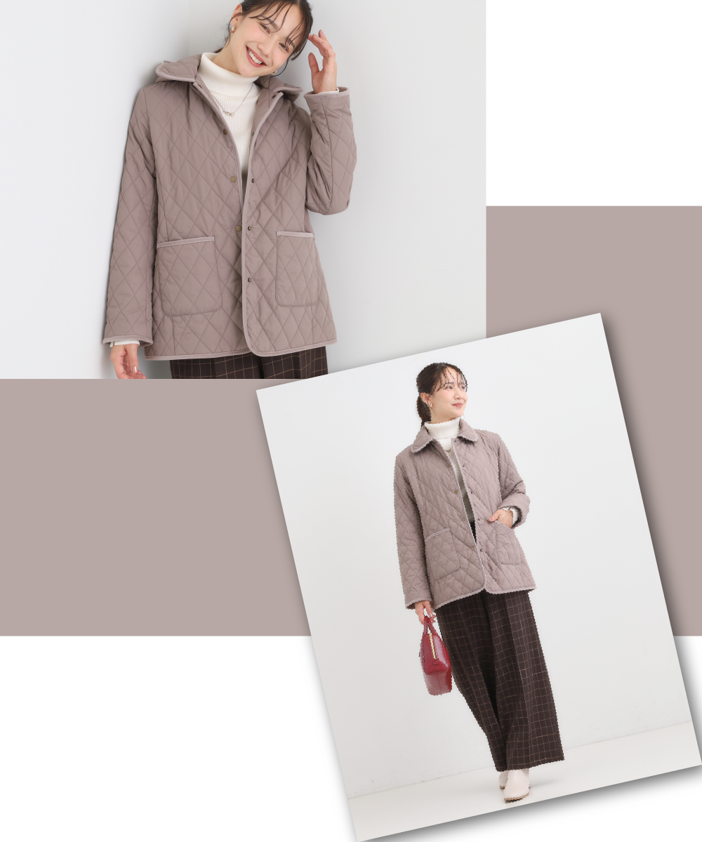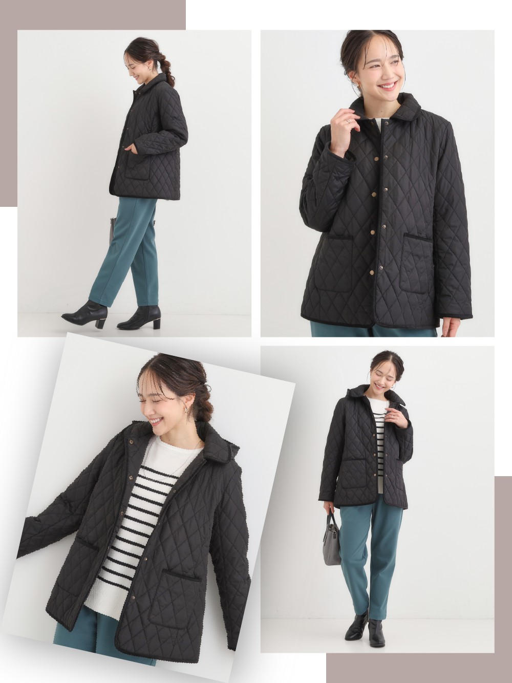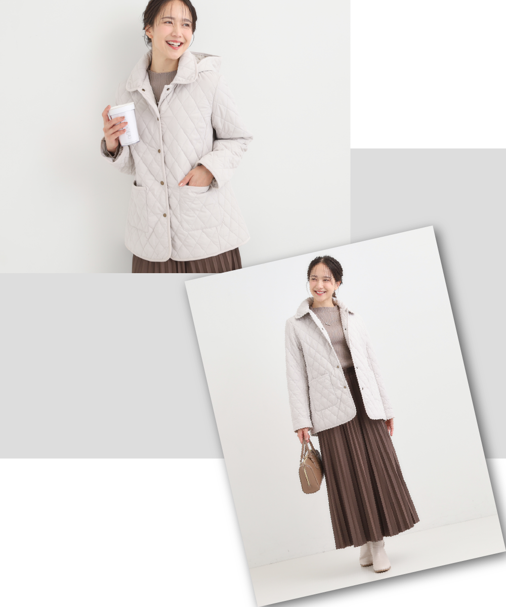 【撥水/フード取り外し可】サッと羽織れる ダイヤ柄キルトジャケット