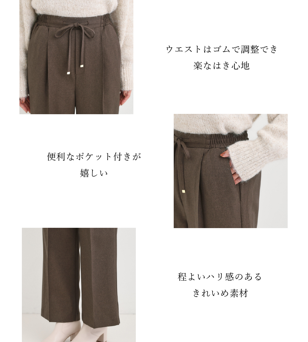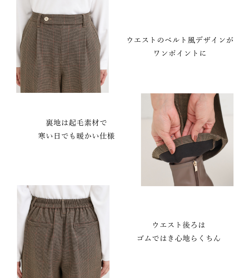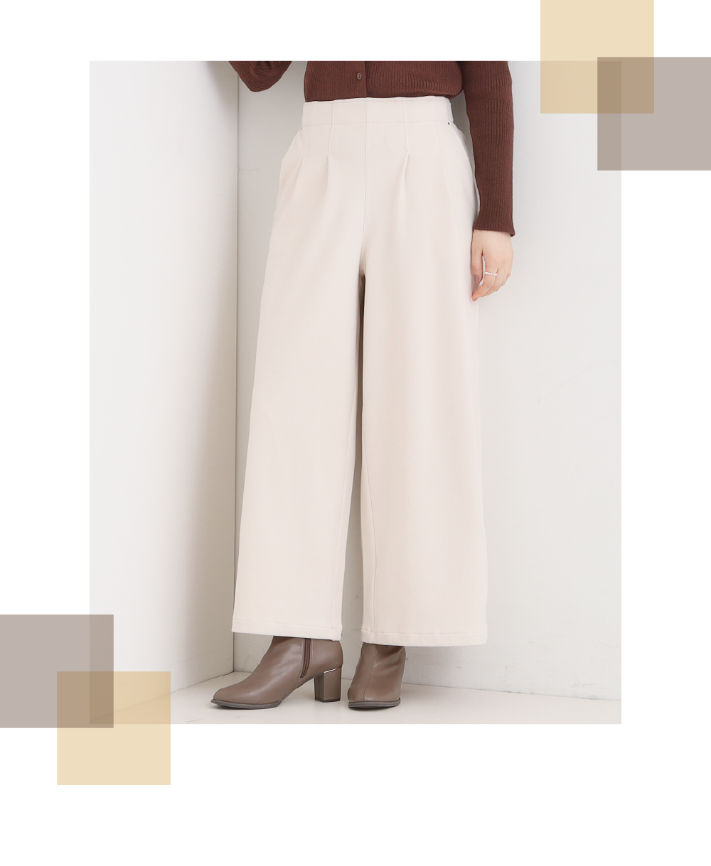 【着丈選べる】ウールフィールあったか裏起毛ワイドパンツ