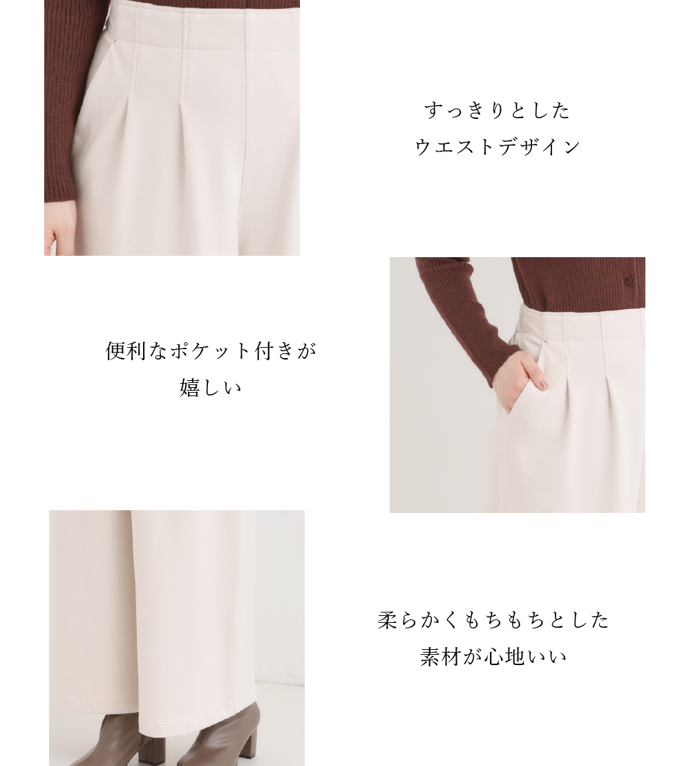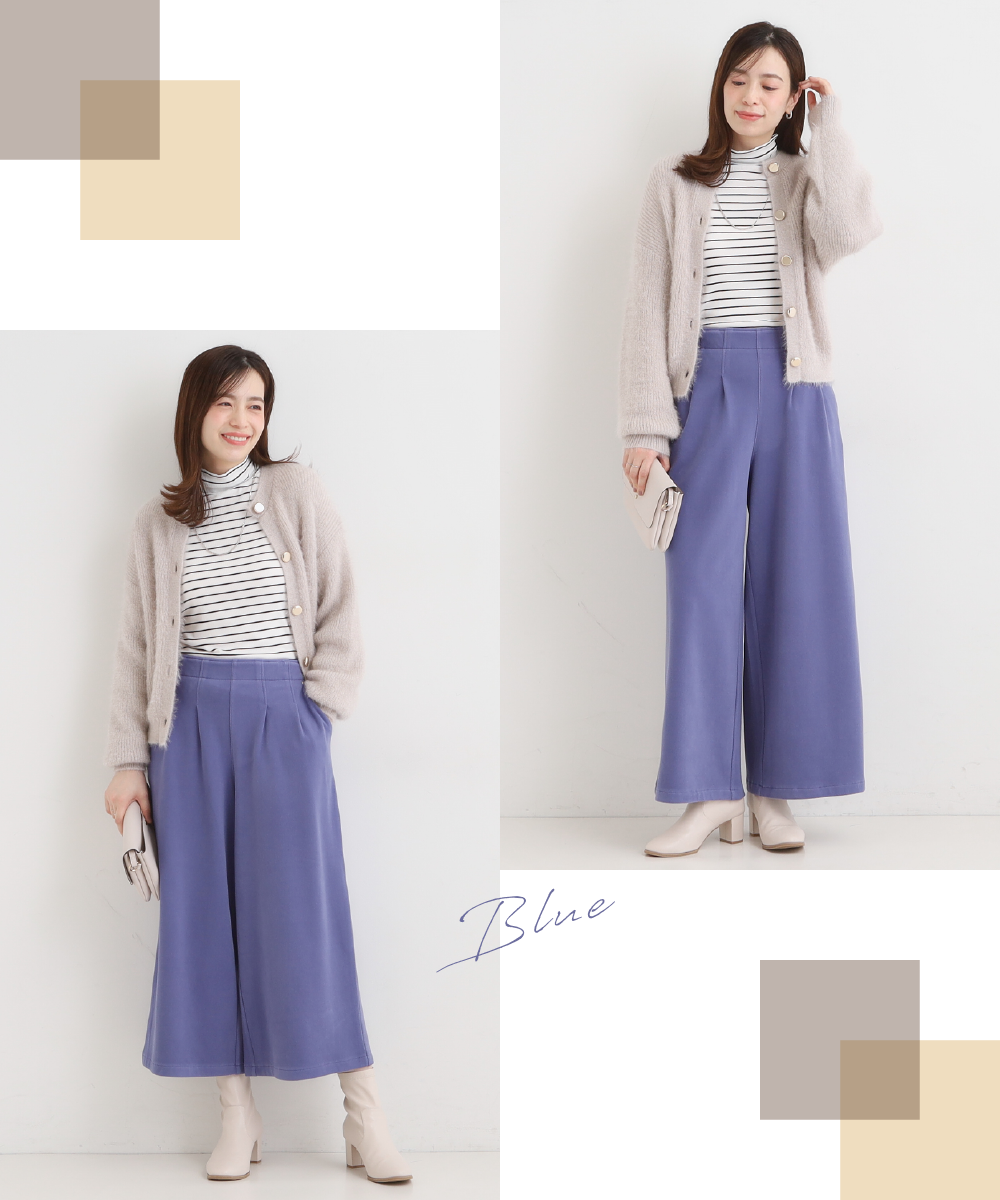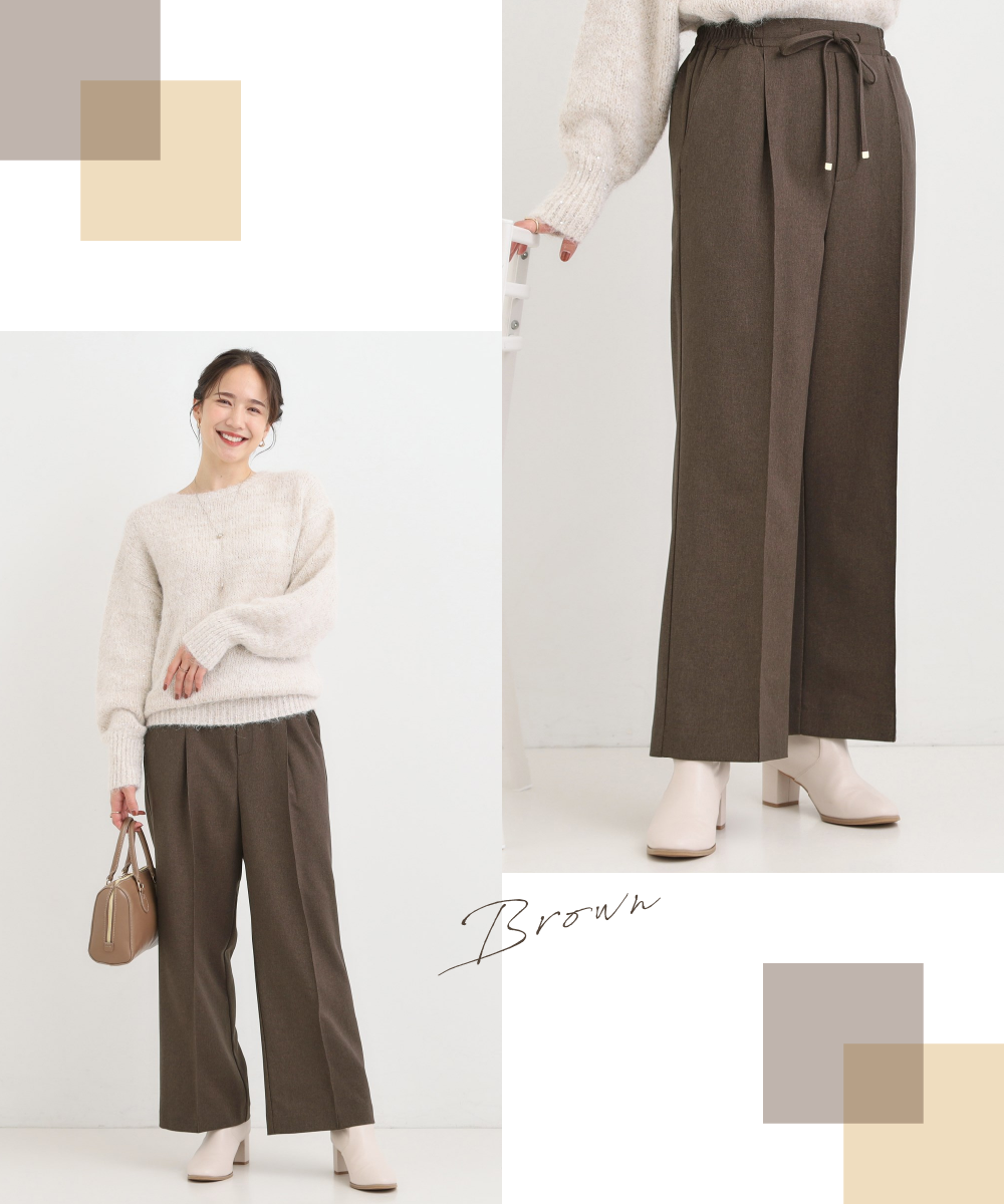 【着丈選べる】ウールフィールあったか裏起毛ワイドパンツ