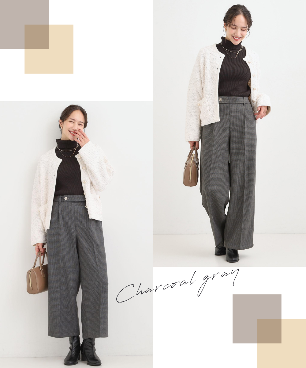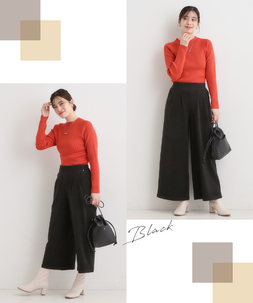 【着丈選べる】大人のきれいめスタイルに ウールフィール ワイドパンツ