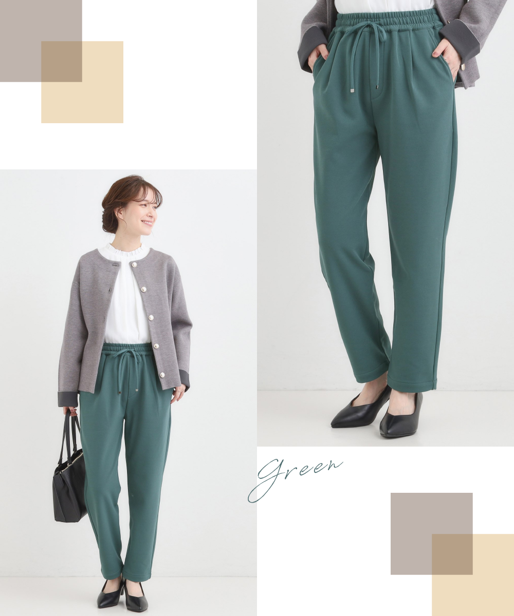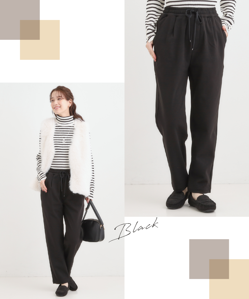 【S-LL/股上深め】裏起毛スマートイージーパンツ