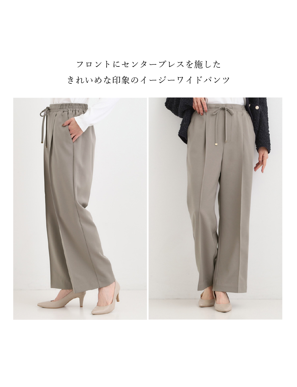 【洗える/S-LL/セットアップ可】脚のラインをきれいに魅せる センタープレスワイドパンツ
