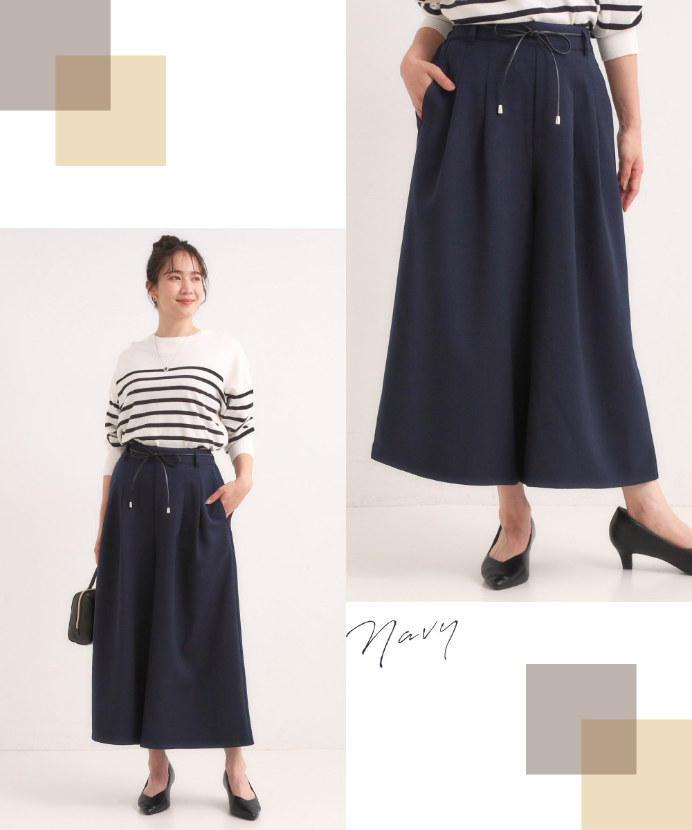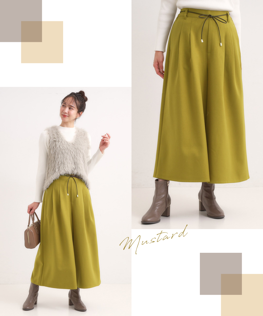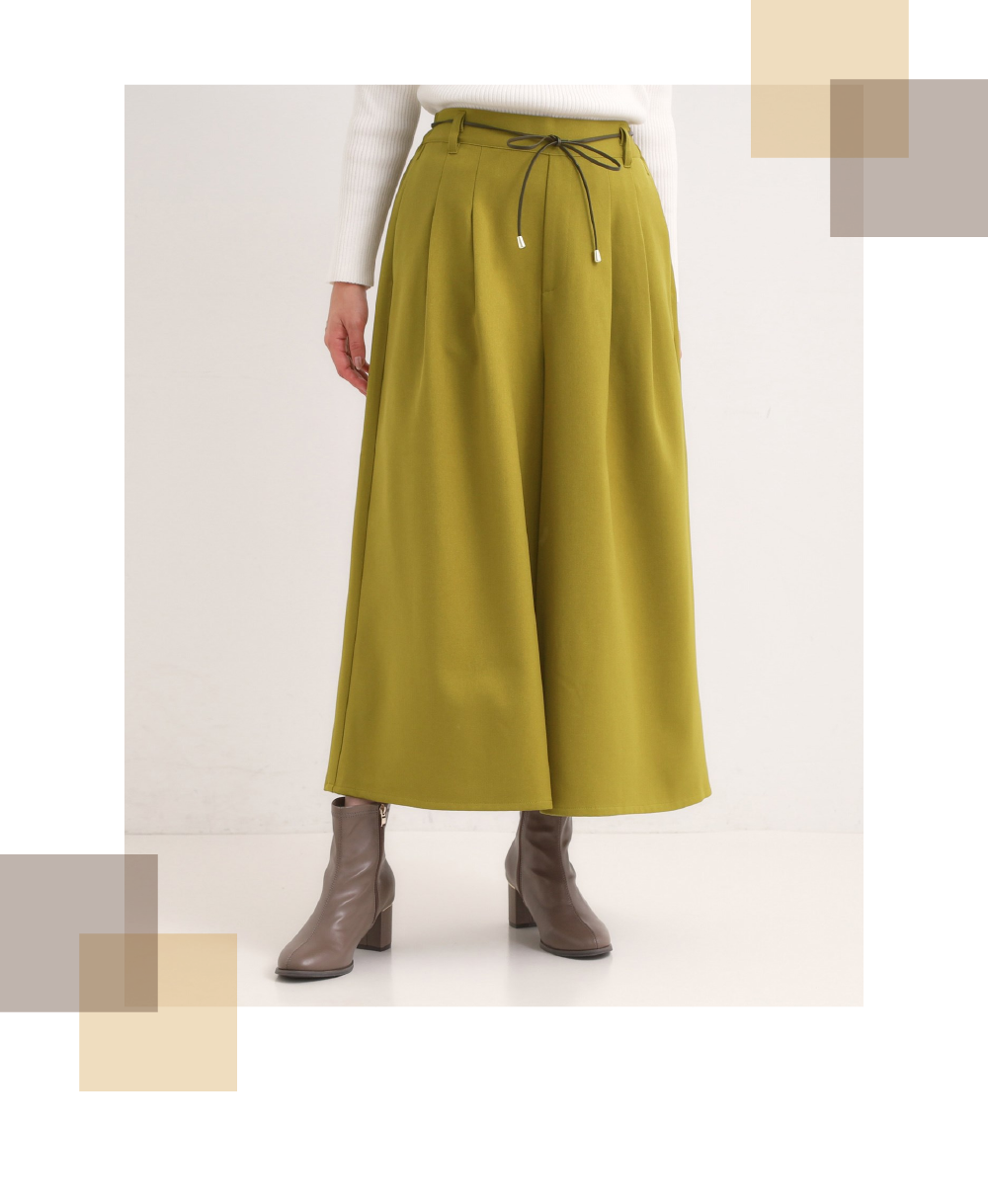 【S-LL/2点セット】脚のラインを拾いにくい ベルト付きタックスカーチョパンツ