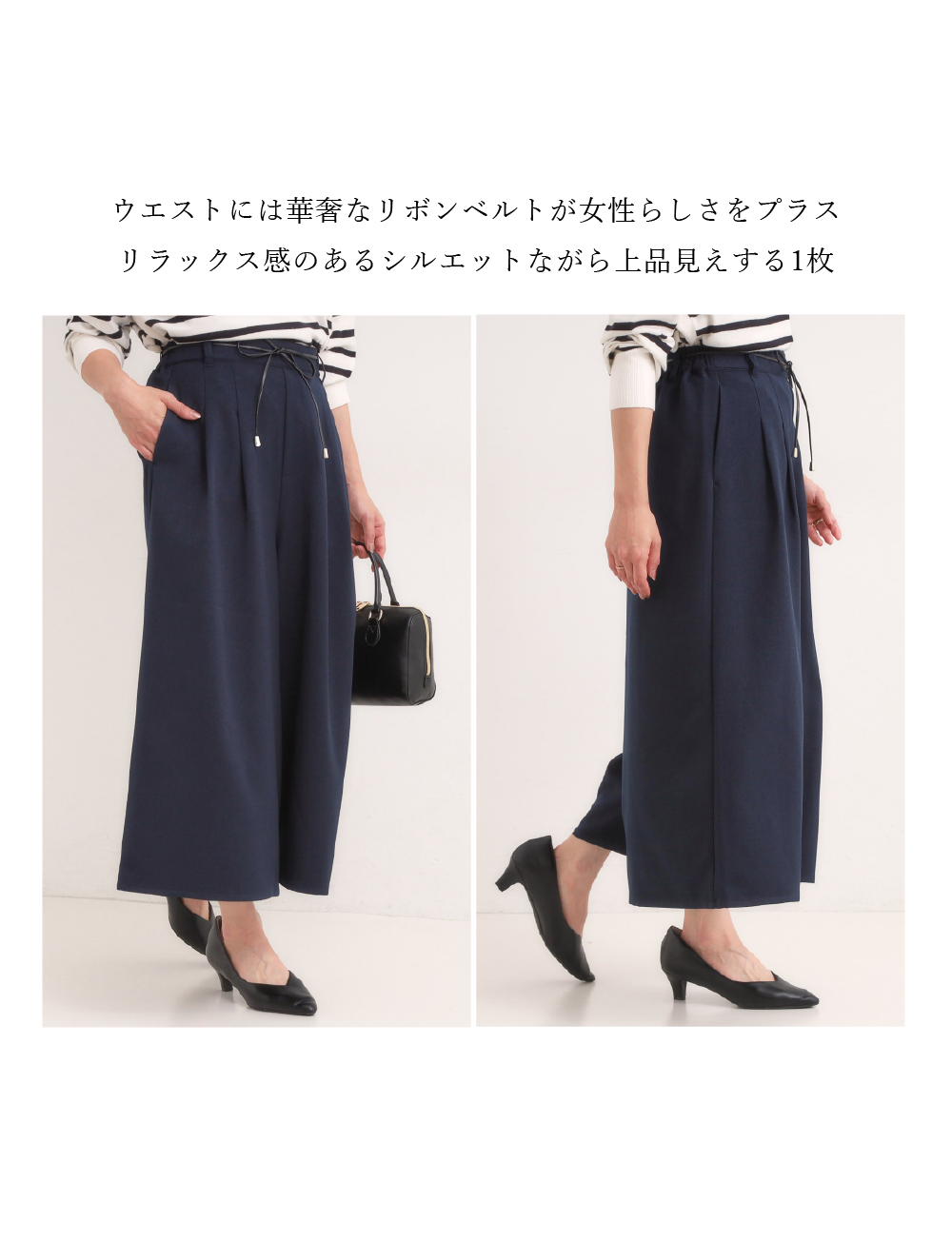 【洗濯機可/S-LL】上品シルエットで美しい イージーワイドパンツ