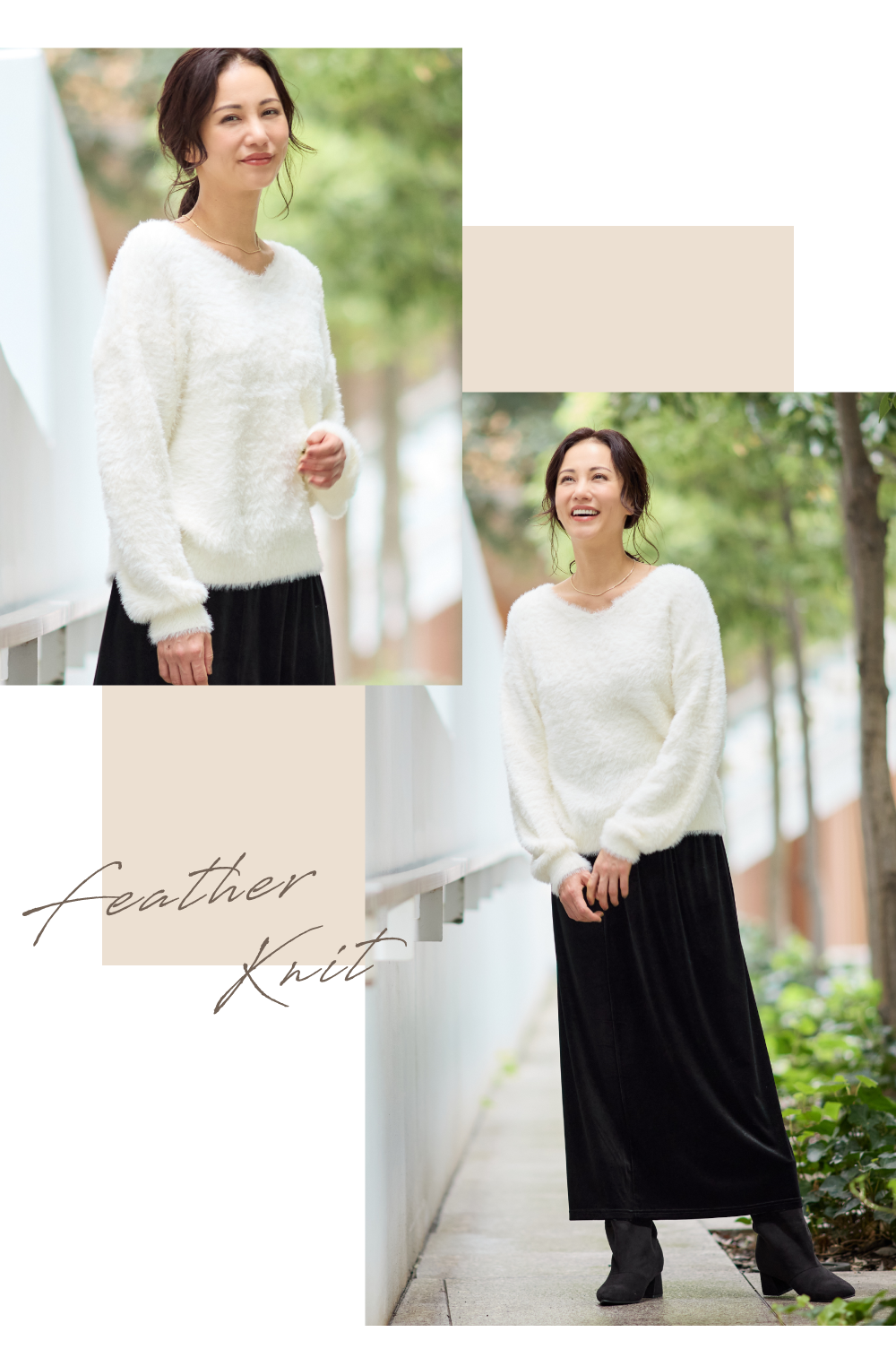 【選べる7色/華やかで柔らか】ふわふわフェザーニット/洗える・前後2WAY