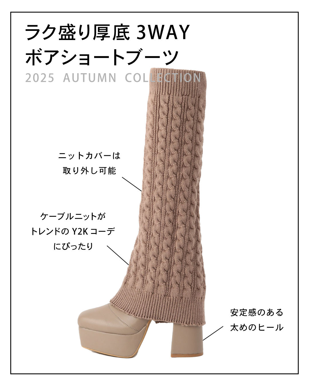 【ラク盛り/ショートブーツ】リピーター続出/脚長美脚 チェンジアップ3WAYボアショートブーツ