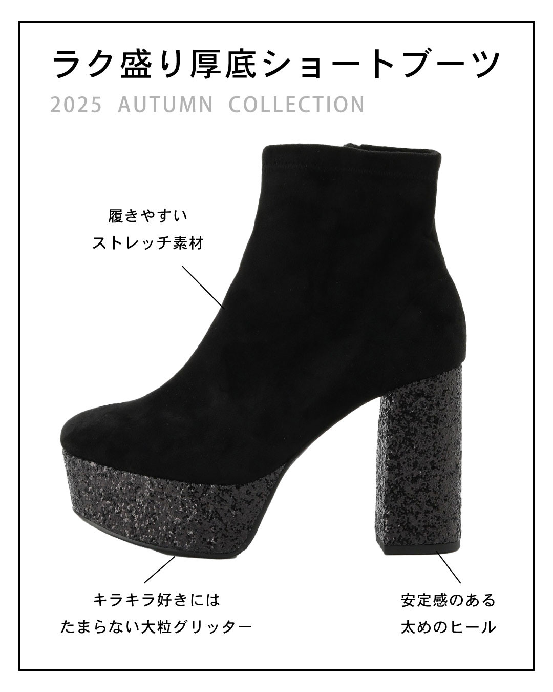 新色追加【ラク盛り/ショートブーツ】リピーター続出/脚長美脚 厚底ショートブーツ
