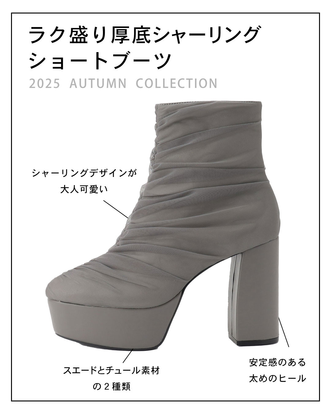 【EC先行販売】【ラク盛り/ショートブーツ】リピーター続出/脚長美脚 厚底シャーリングブーツ