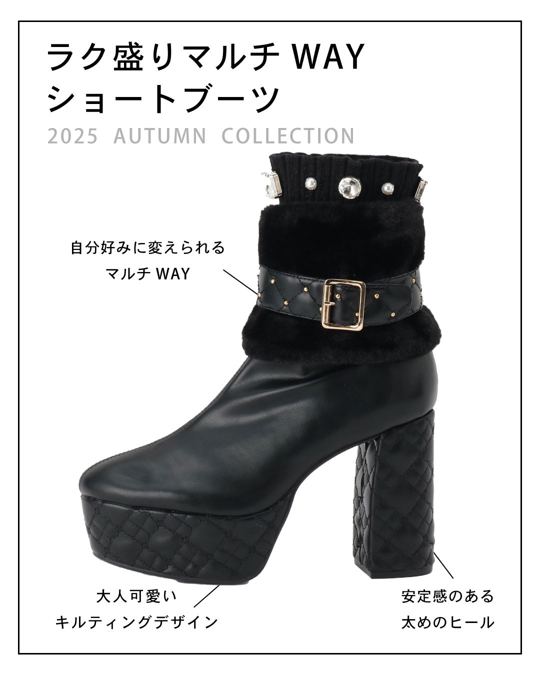 【ラク盛り/ショートブーツ】リピーター続出/脚長美脚 1足で8パターン楽しめる!マルチWAYショートブーツ