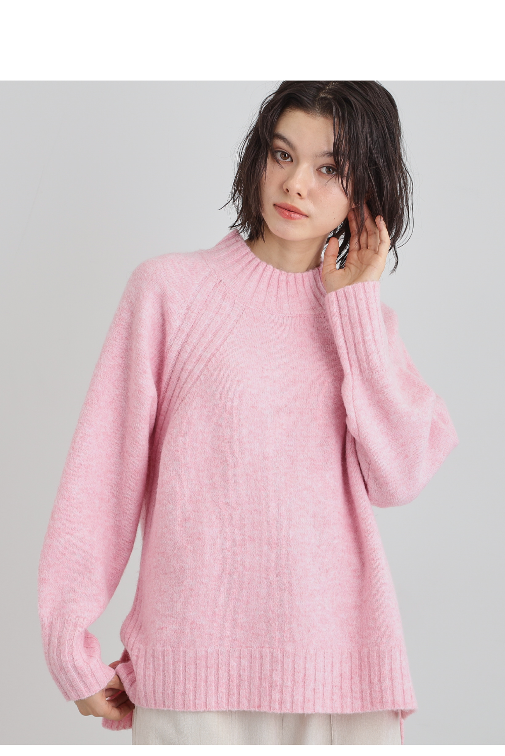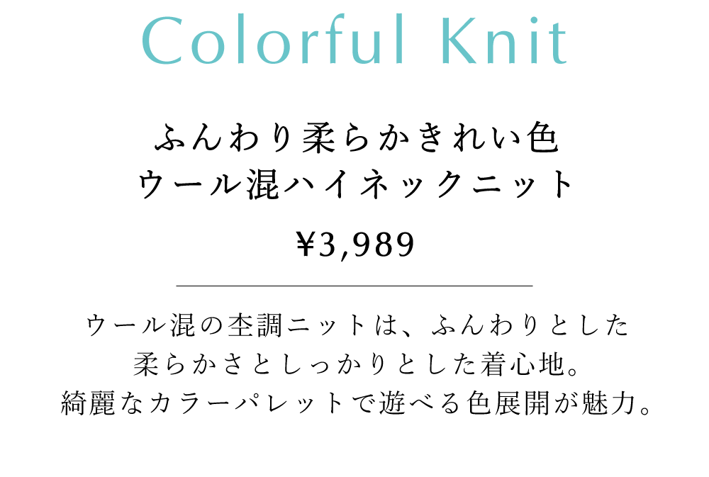 ふんわり柔らかきれい色 ウール混ハイネックニット
