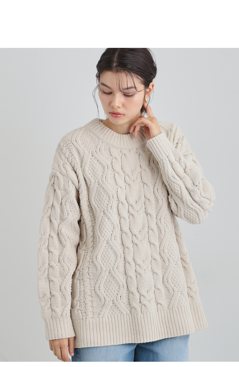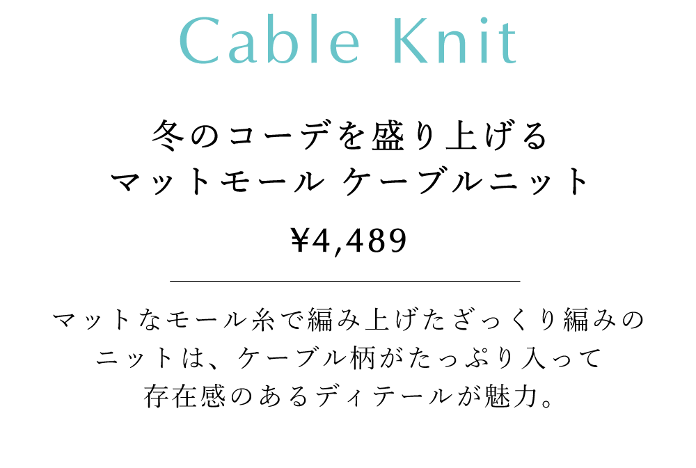 【洗える】冬のコーデを盛り上げる マットモール ケーブルニット