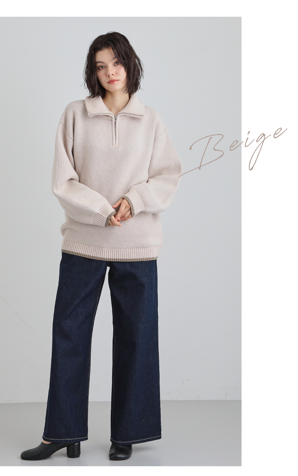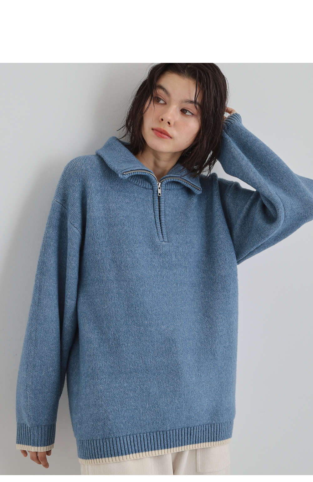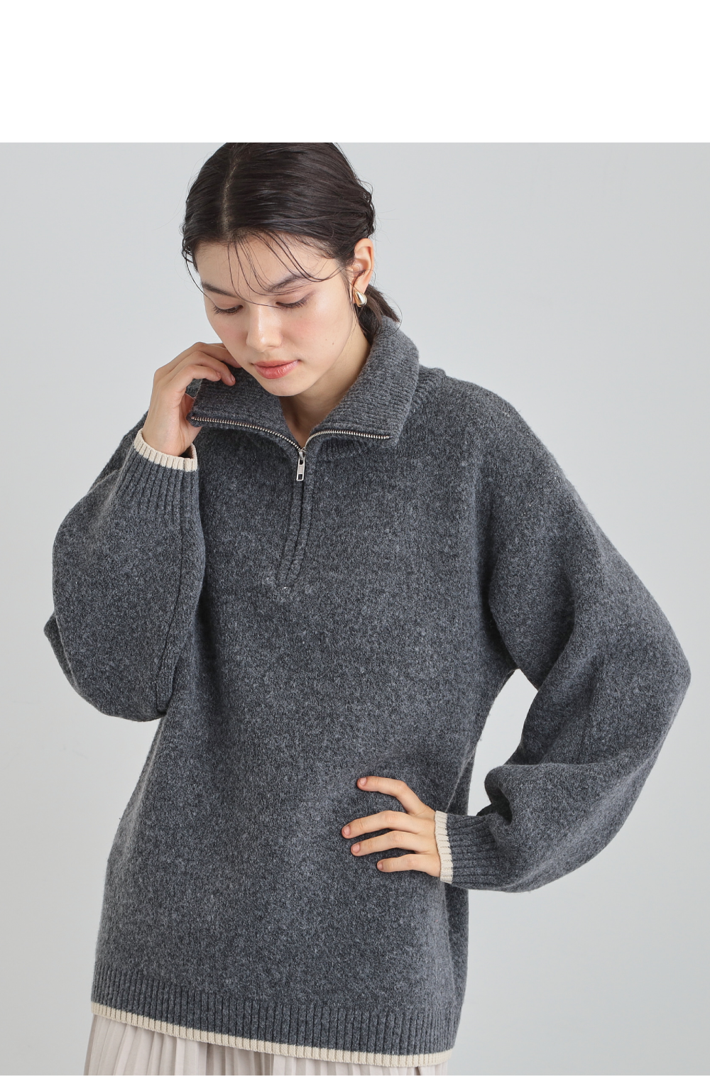 【洗える】ほど良くラフで女性らしい ハーフZIPニット