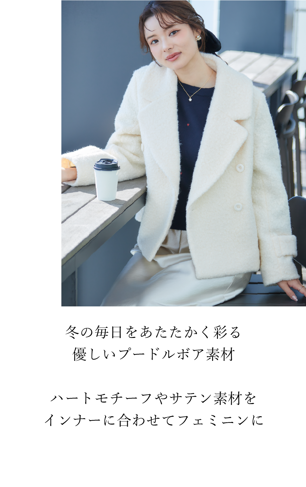 ふんわりとしたシルエットや優しい色合いに心ときめく冬アウター。羽織るだけで女性らしさがそっと香る、とっておきの一枚を見つけて。
