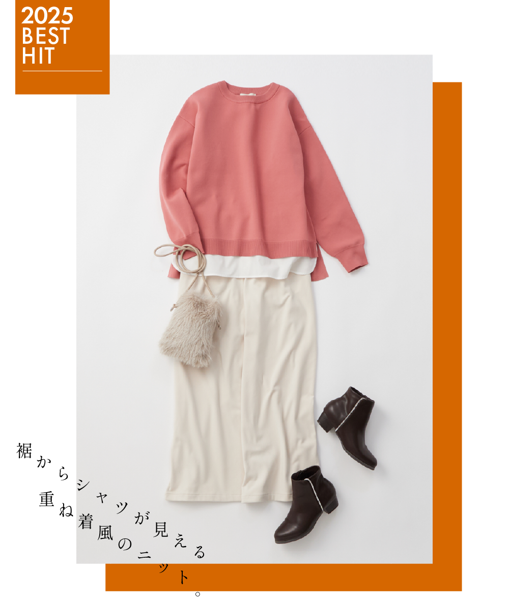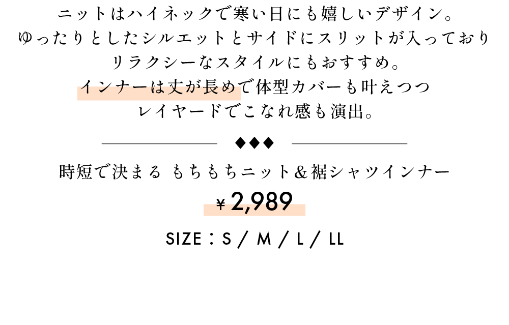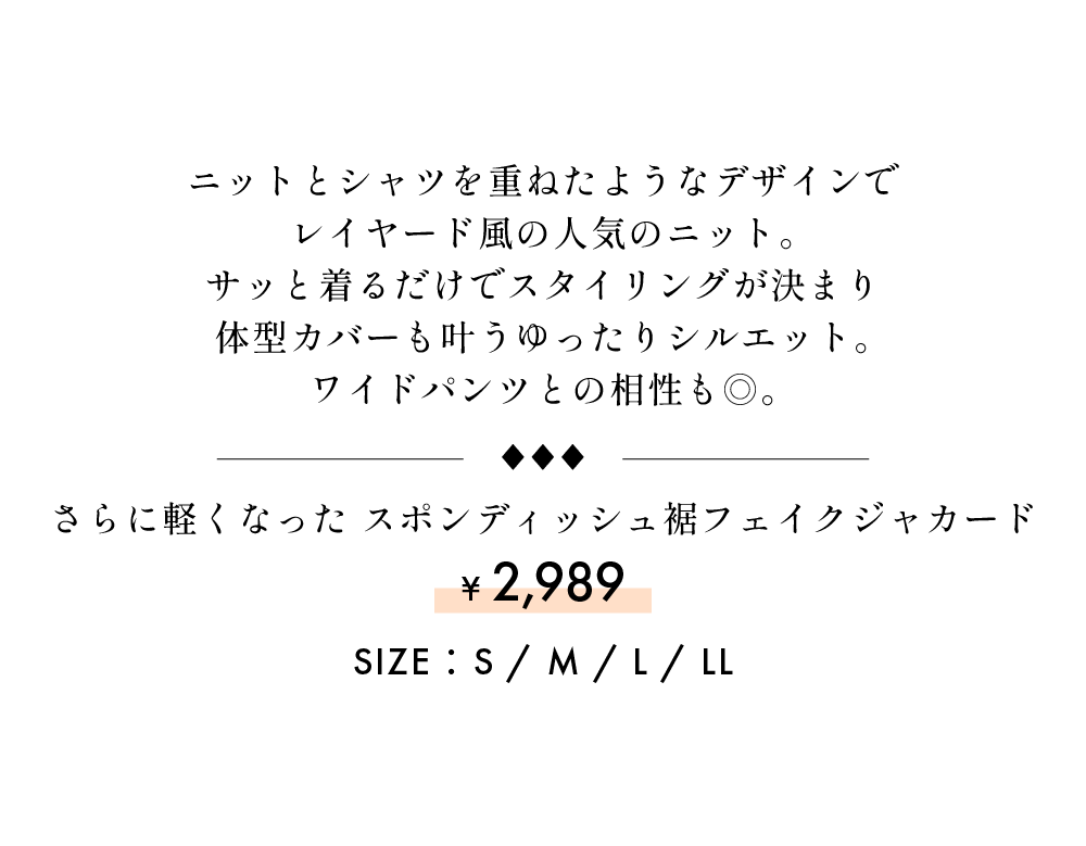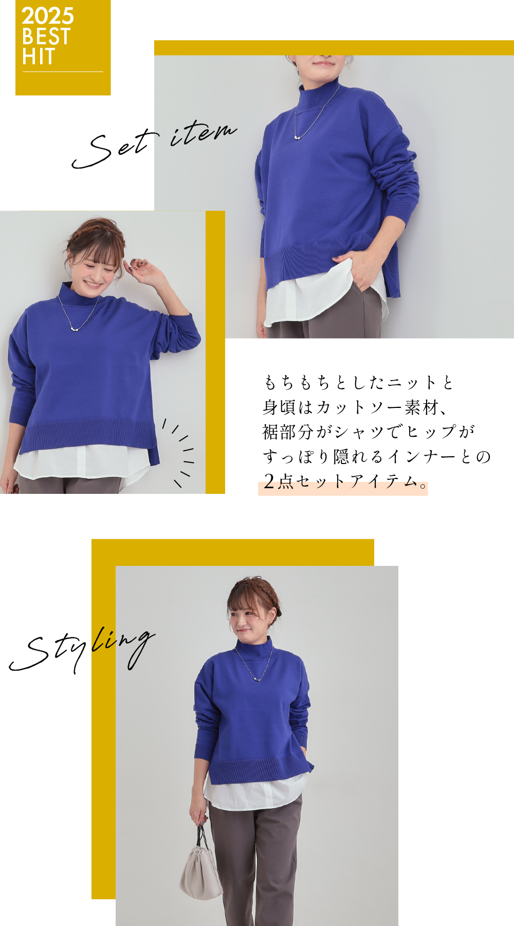 【2点セット/S-LL】時短で決まる もちもちニット&裾シャツインナー
