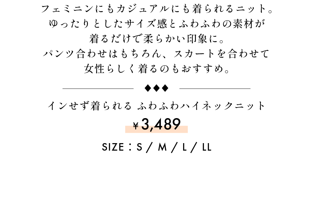 【洗濯機可/S-LL】インせず着られる ふわふわハイネックニット