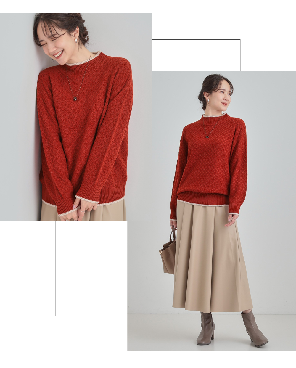 【洗濯機可/毛玉レス】配色がアクセント ダイヤ柄ゆるニット