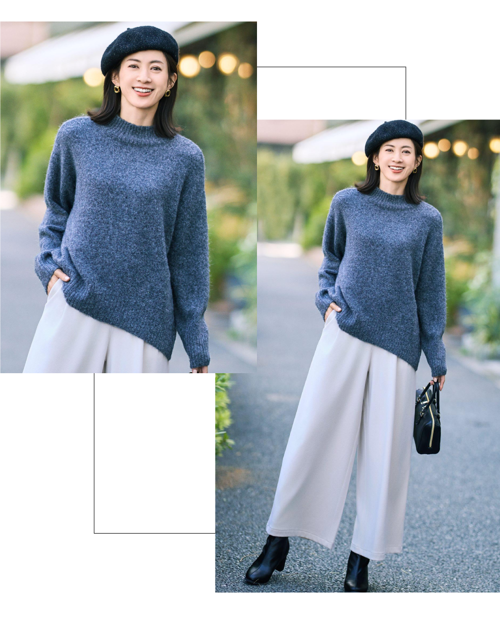 【セットアップ可/S-LL】インせず着られる 洗えるもちもち裾ラウンドニット