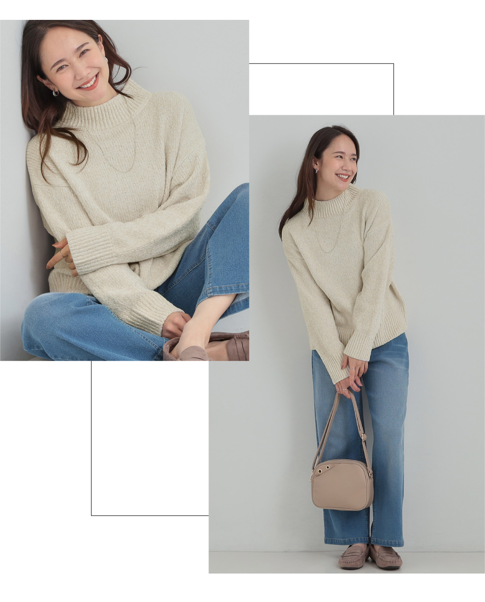 【S-LL】ほんのりラメで女性らしい ベロアモールモックネックニット