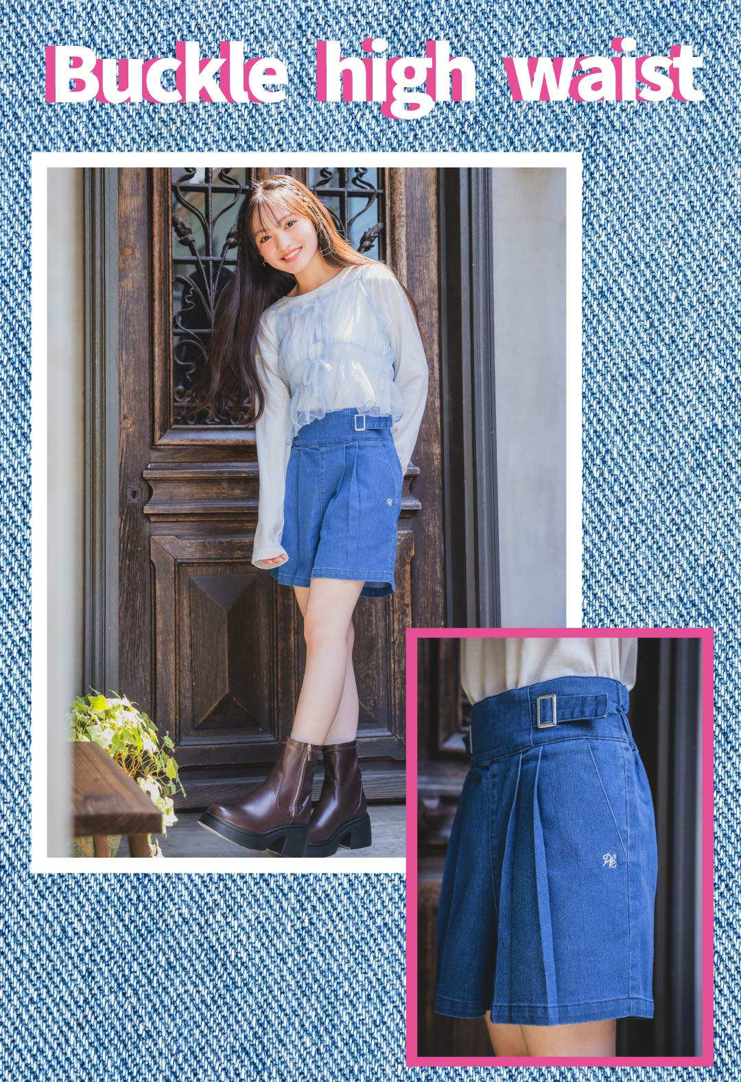 バックルハイウエストショートパンツ