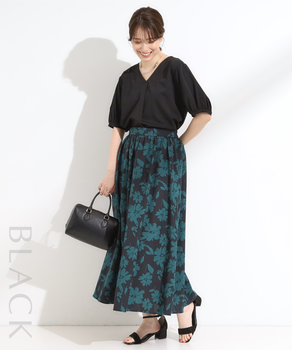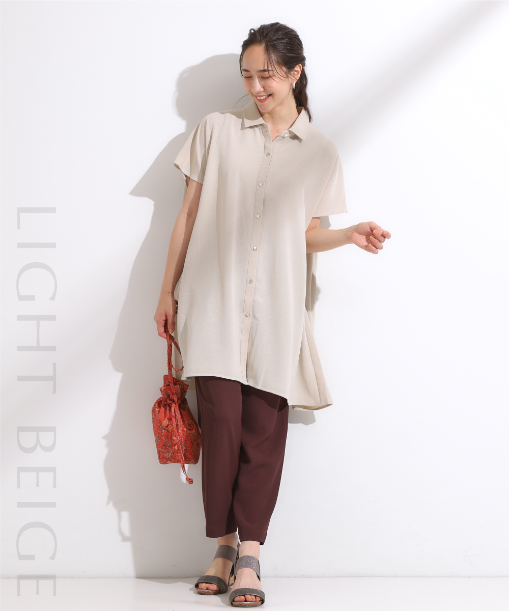 【S-LL/セットアップ可/ひんやり】きちんと見えで上品 お袖タック スキッパーブラウス