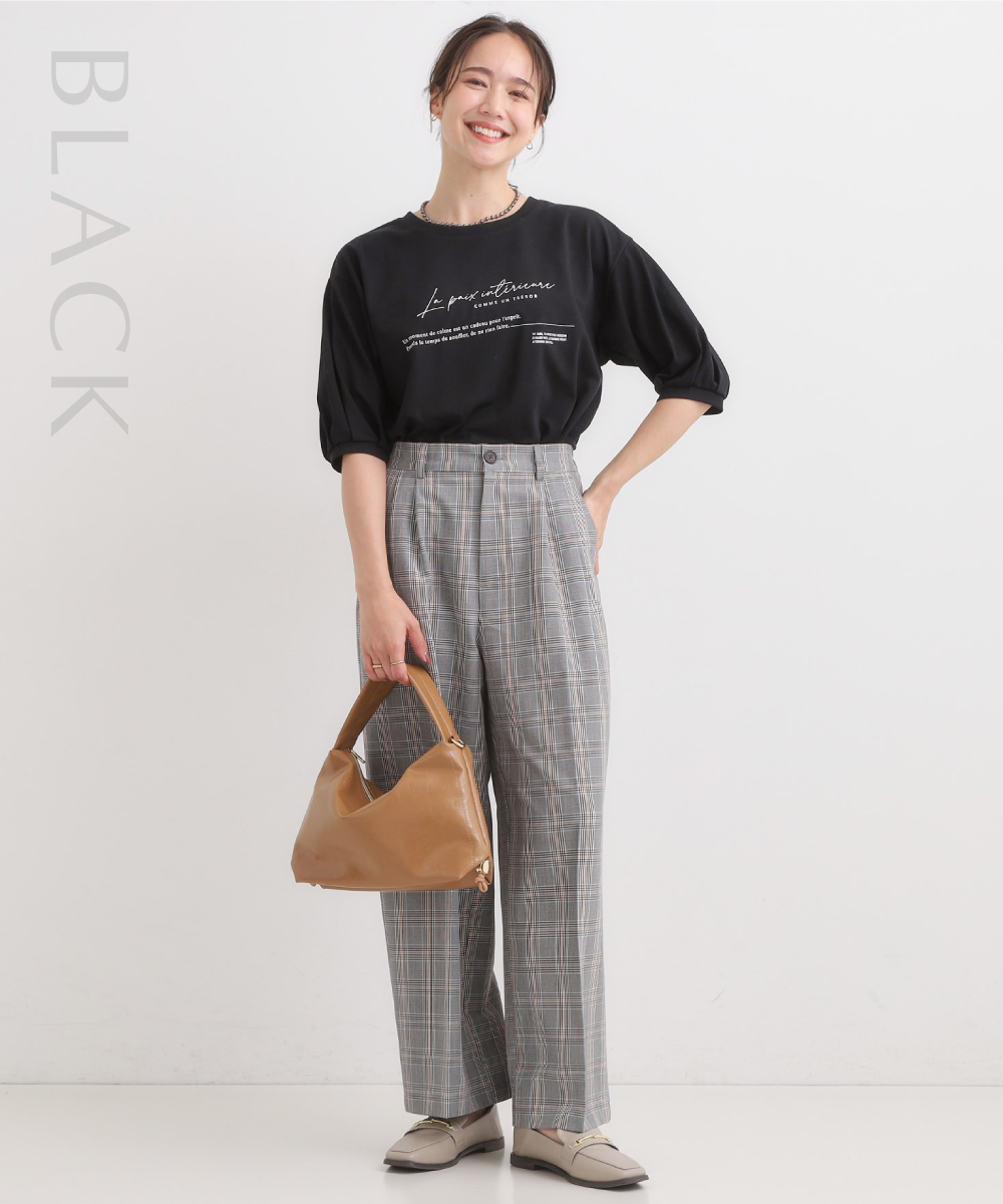 【ひんやり/S-LL/洗える】シアーチェックが涼やか 5分袖チュニック
