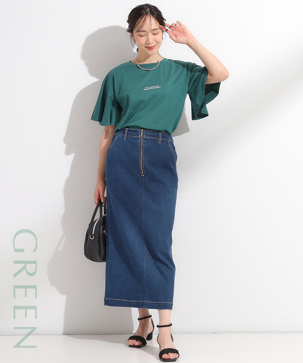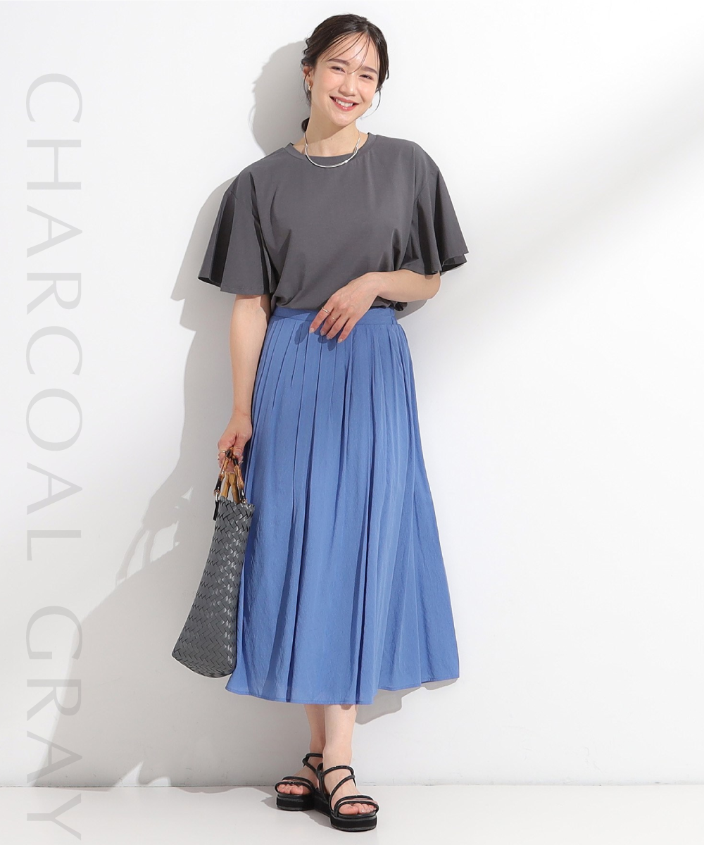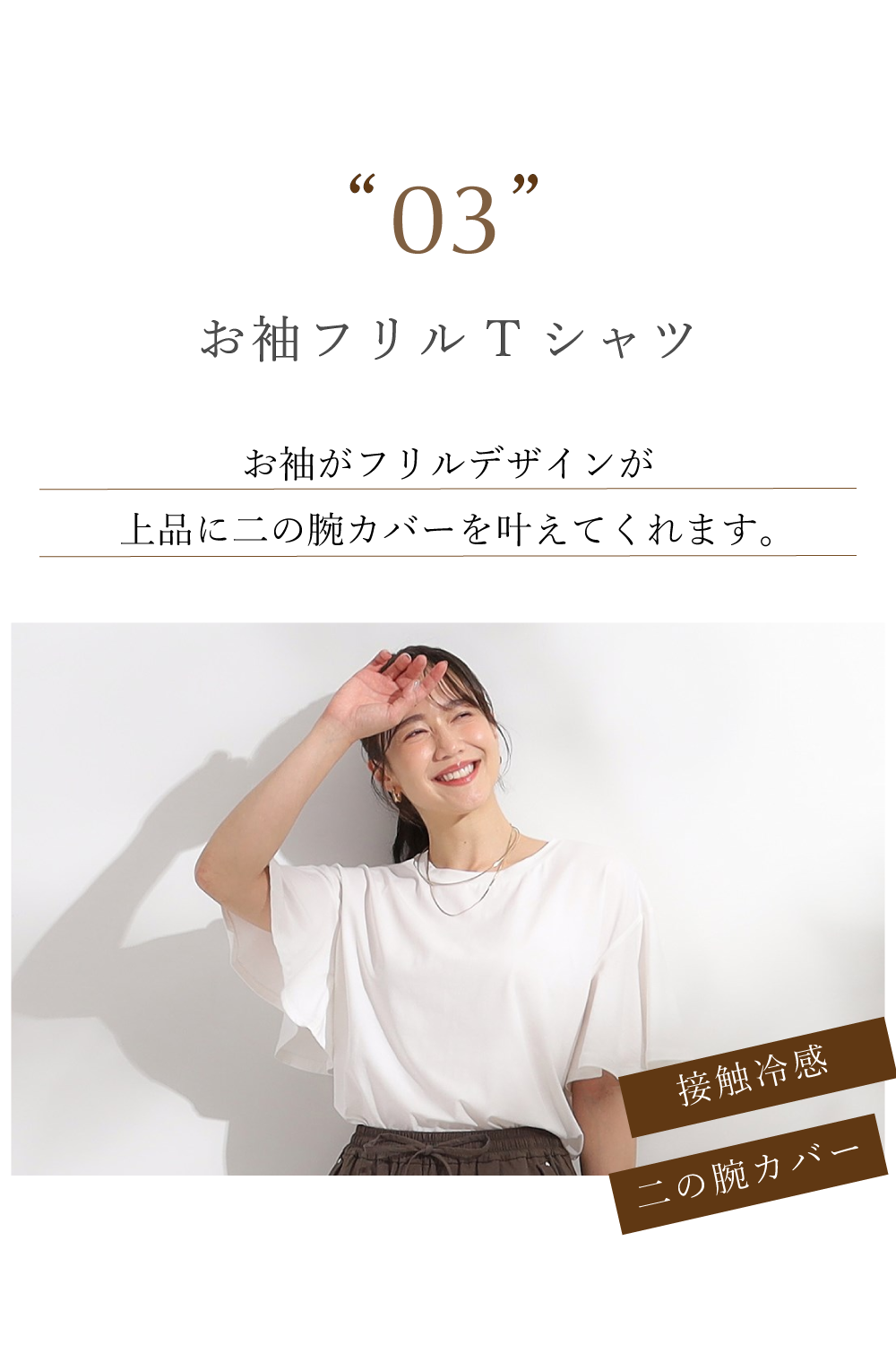 【S-LL/ひんやり/二の腕カバー】華やかさをプラスする お袖フリルTシャツ