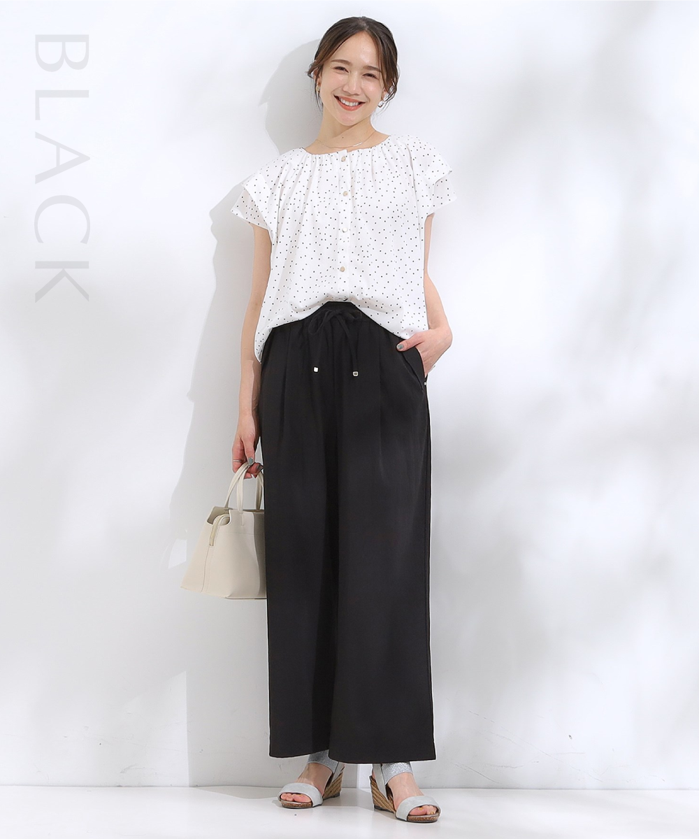 【着丈選べる】触れる度ひんやり ゆるきれい イージーワイドパンツ