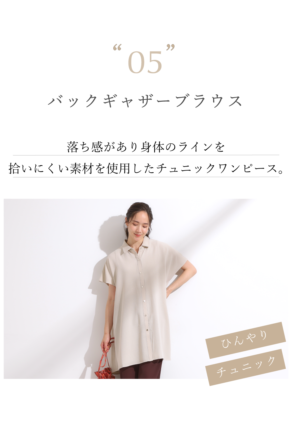 【S-LL/ひんやり】さらりとしたタッチが心地よい バックギャザーブラウス