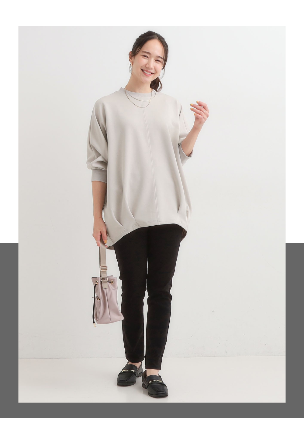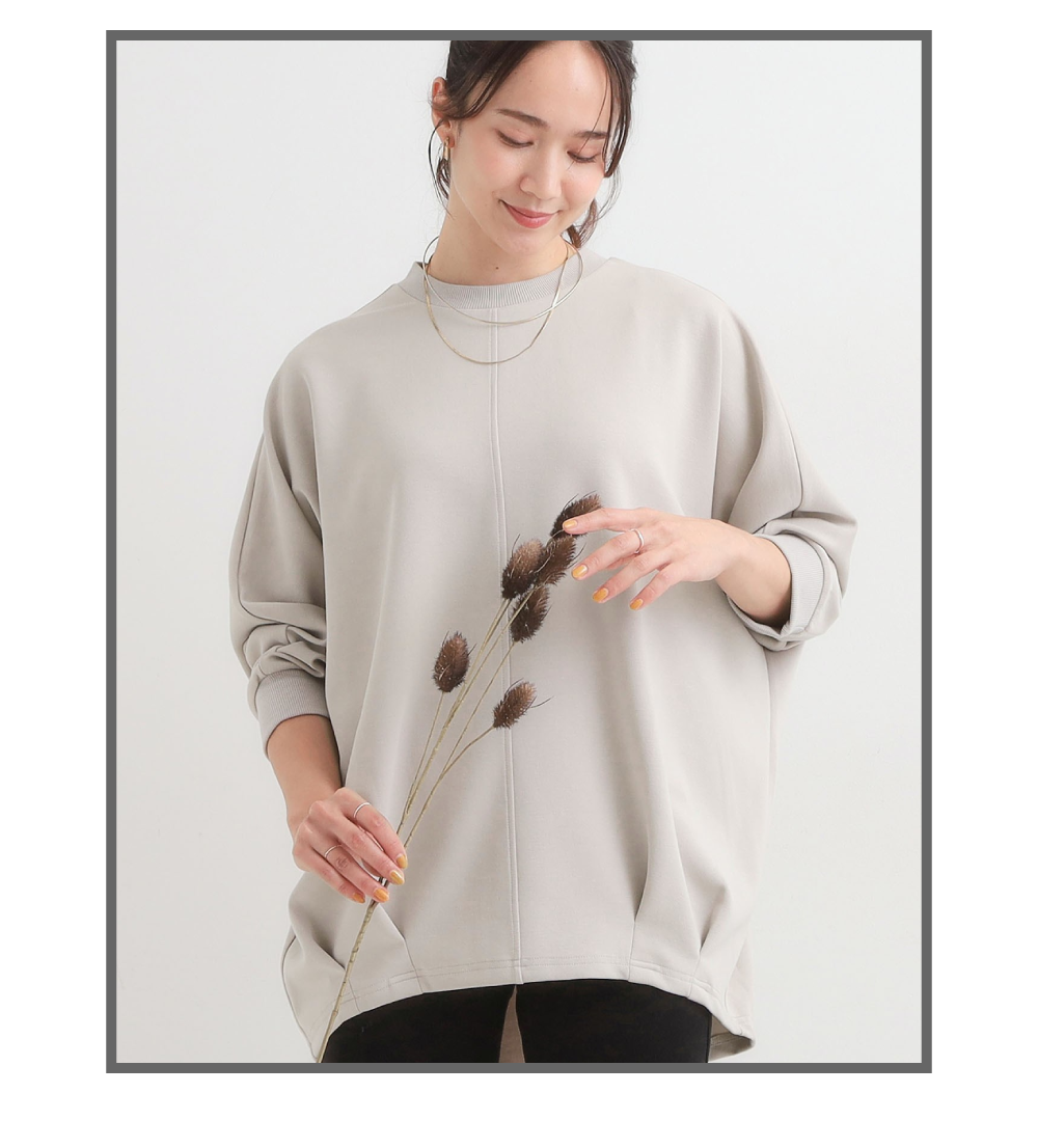 【S-LL/体型カバー】とろみ感が心地よい 裾タック ドルマンチュニック