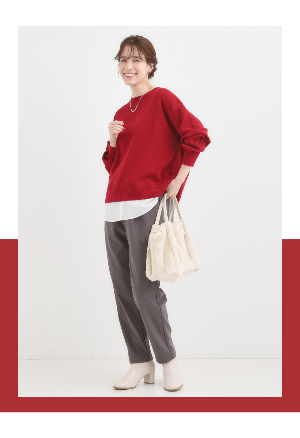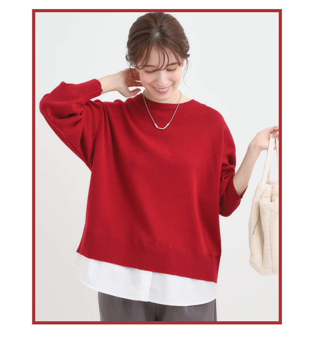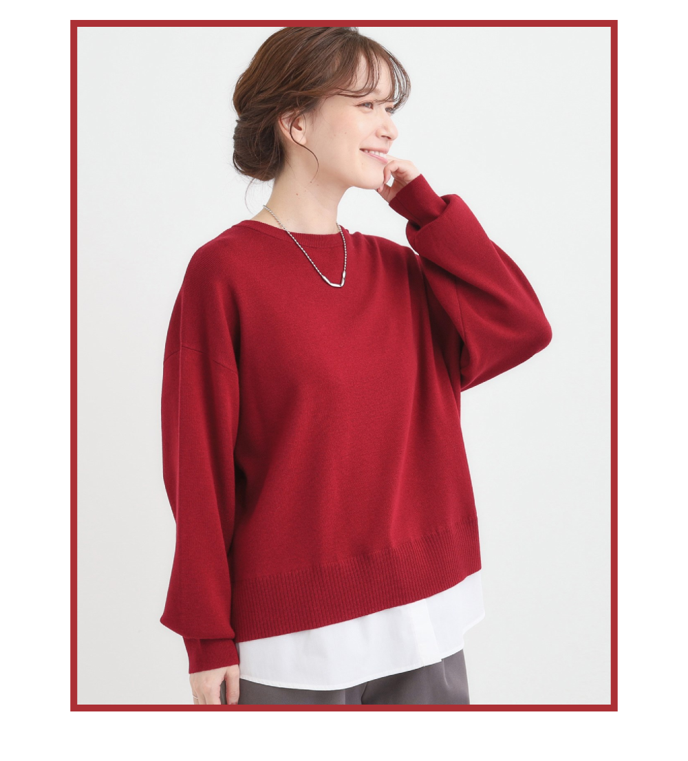 【洗濯機可/毛玉になりにくい】一枚で簡単こなれ見え 裾フェイクレイヤード風ニット