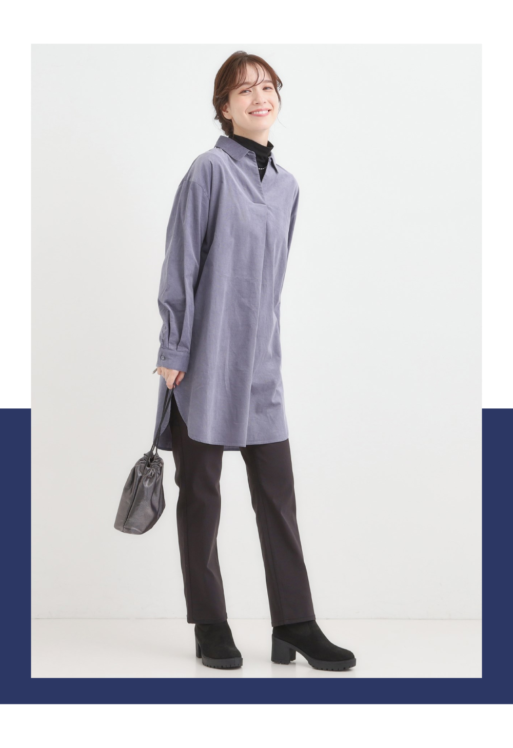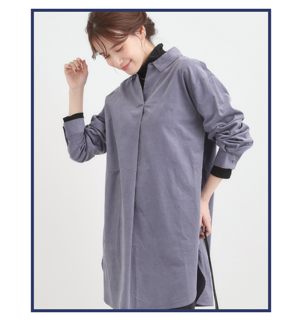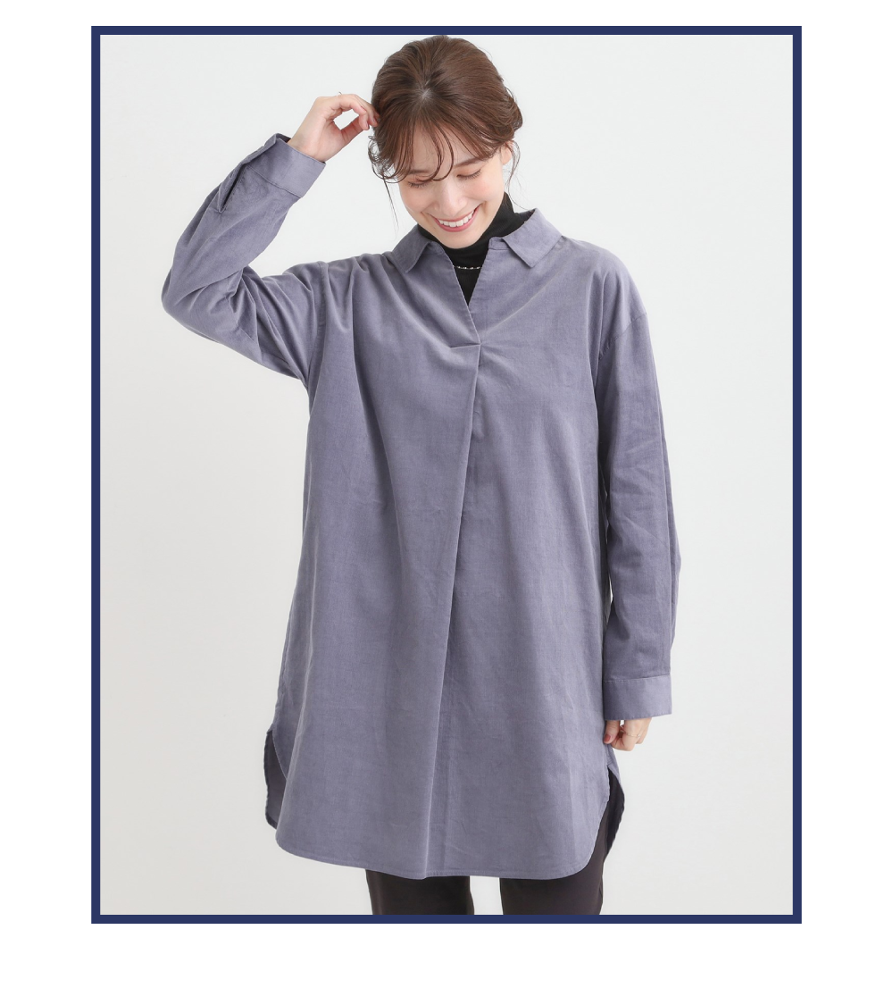 【洗濯機可/S-LL】すっきり見えにこだわった コーデュロイチュニックワンピース