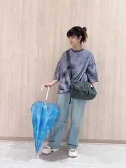 【スタッフおすすめ☔️】新作のボーダーカーディガンに撥水加工のバッグで雨の日のお出かけスタイル✨お気に入りの傘で楽しく過ごしたいですね😊☔️かわいい傘たくさん入荷しています!ぜひ、チェックしてください✅スタッフ身長157cm