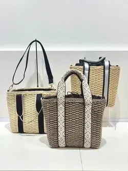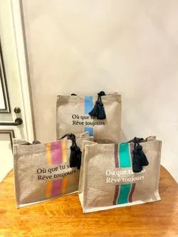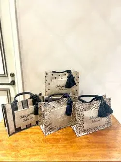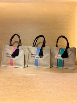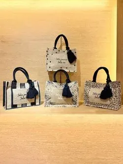 ナチュラルなジュート素材を使用した、魅力的なアソートジュートタッセルトートシンプルながらも存在感のあるデザインが特徴です。ポケットにロゴプリントを施し、本体はオリジナルのプリント柄になっており、さりげないアクセントに。ほどよいボリュームのタッセルチャームがアクセントとなり、コーディネートに華やかさをプラスします。夏のお出かけやショッピング、ちょっとした外出にぴったりのアイテムで、ナチュラルな風合いと洗練されたデザインが、自然体でスタイリッシュな印象を演出します。軽やかさとエコ素材の魅力を兼ね備え、環境にも優しい選択です。デイリーから特別なシーンまで幅広く活躍し、あなたのスタイルに自然な彩りを添えます。