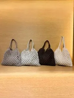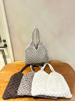 《マクラメトート》トレンド感のあるマクラメの編み模様の夏バッグです!軽やかな抜け感もあり、大人カジュアルコーデやキレイめカジュアルにピッタリのバッグです。