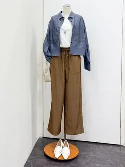 【おでかけコーデ】ブルーで全体を統一して、ベージュやホワイトのアイテムでアクセントを!