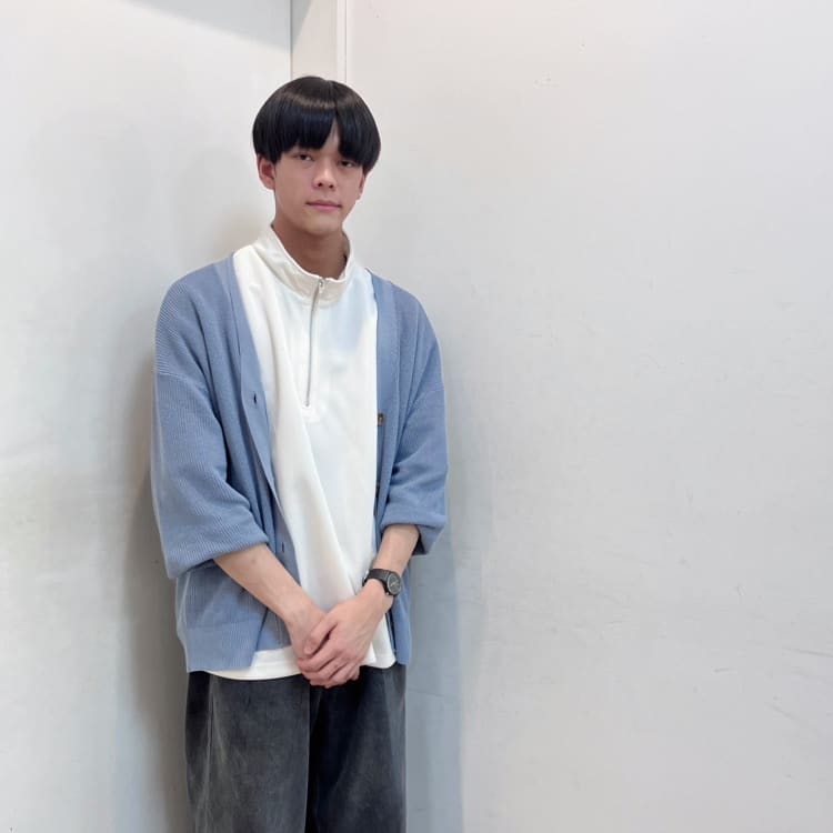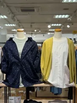 デイリーユースにぴったりの、大人カジュアルコーデ✨️ベーシックなドット柄シャツに、上品なニュアンスカラーのブルーパンツを合わせることで、派手になりすぎず落ち着いた印象に👍さらに!ダークグレーのカーディガンを肩掛けすれば、こなれ感とトレンド感がプラスされワンランク上の着こなしが完成します💡お散歩やちょっとしたお出かけなど、リラックスしたいシーンにおすすめです😊