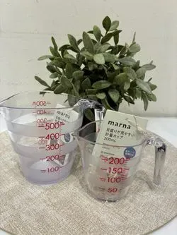 とにかく便利!どこから見ても目盛りが見やすく、注ぎやすいです。電子レンジ加熱OKなのも便利!◎持ち手に穴が空いているので、私はS字フックでキッチンの流しにかけています!注ぎ口は先端が薄く、注ぎやすく液だれしにくい形状。内側に角がないので洗いやすく、逆さにしたときに注ぎ口が台に触れないので、乾きやすく衛生的です。200mlと500mlをセット買いする方も多い人気商品です。