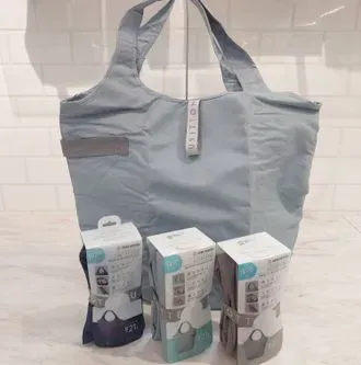 これからの時期に大活躍のクルリトクーラーマルシェバック。2リットルサイズの容器も、2本余裕で入る大好きさ!内側がアルミになっているので、保冷剤もいっしょに、暑い日のお買い物に便利。使わない時には、小さくたたんで置くこともできるのもいいですね!