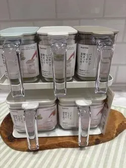 パッキン付きで湿気を防ぐので、中に入れた調味料が固まりませんよ。片手でポンで簡単で開けられます。大きいサイズには大さじ(15g)小さいサイズには小さじ(5g)が入っています。すりきり板付き、シール(砂糖・塩・小麦粉・片栗粉)付で、うっかりミスがありません。