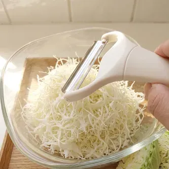 キャベツの千切り、手間だと思っていませんか?私も以前は包丁で刻んでいたのですが、どうしても周囲に飛び散ったりする手間が気になって…!個人的に、それ専用になってしまう道具を増やすのに抵抗もあったのですが、いざ使ってみると、とんかつ屋さんのようなふわふわでシャキシャキの食感!!しかもこれ、玉ねぎや大根にも使える!?サラダ革命!!という感じで、ついついなんでもかんでもスライスして、サラダ摂取量大幅アップ!これのおかげで野菜を摂るのが楽しくなり、食卓に彩りも増えました。ぜひおすすめしたい逸品です!