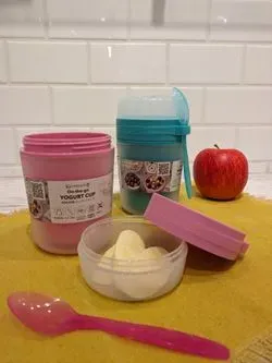 \\ヨーグルトの持ち運びに🐮//ヨーグルトとトッピングを別々にいれることのできるヨーグルトカップ◎シリアルやフルーツを食べるときに入れられるので美味しくて持ち運びも安心😌ヨーグルトだけではなく、麺類やサラダなどにもおすすめです🌽容器は中の温度を保てるダブルウォール構造✨️ランチにおすすめのアイテムです!