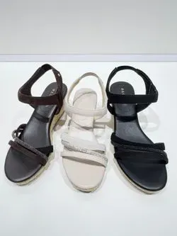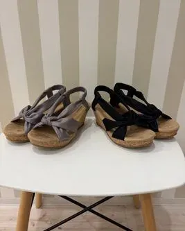 【人間工学】毎年大人気!片手で履けるワンタッチサンダル【デザイン】groveで毎年人気のワンタッチサンダル。今期はビジューラインをデザインに加えてより華やかな印象に仕上げました。ヒール部分はウェッジソールになっているので高低差が少なく安定感があり歩きやすいです。バックベルト・ネックベルトのサイドスリット部分にゴムを入っており軽々足入れでき、片手でスポっと楽に履ける(ワンタッチ)嬉しい仕様になっております。中敷きはふわふわのクッションで足あたりも良いです。